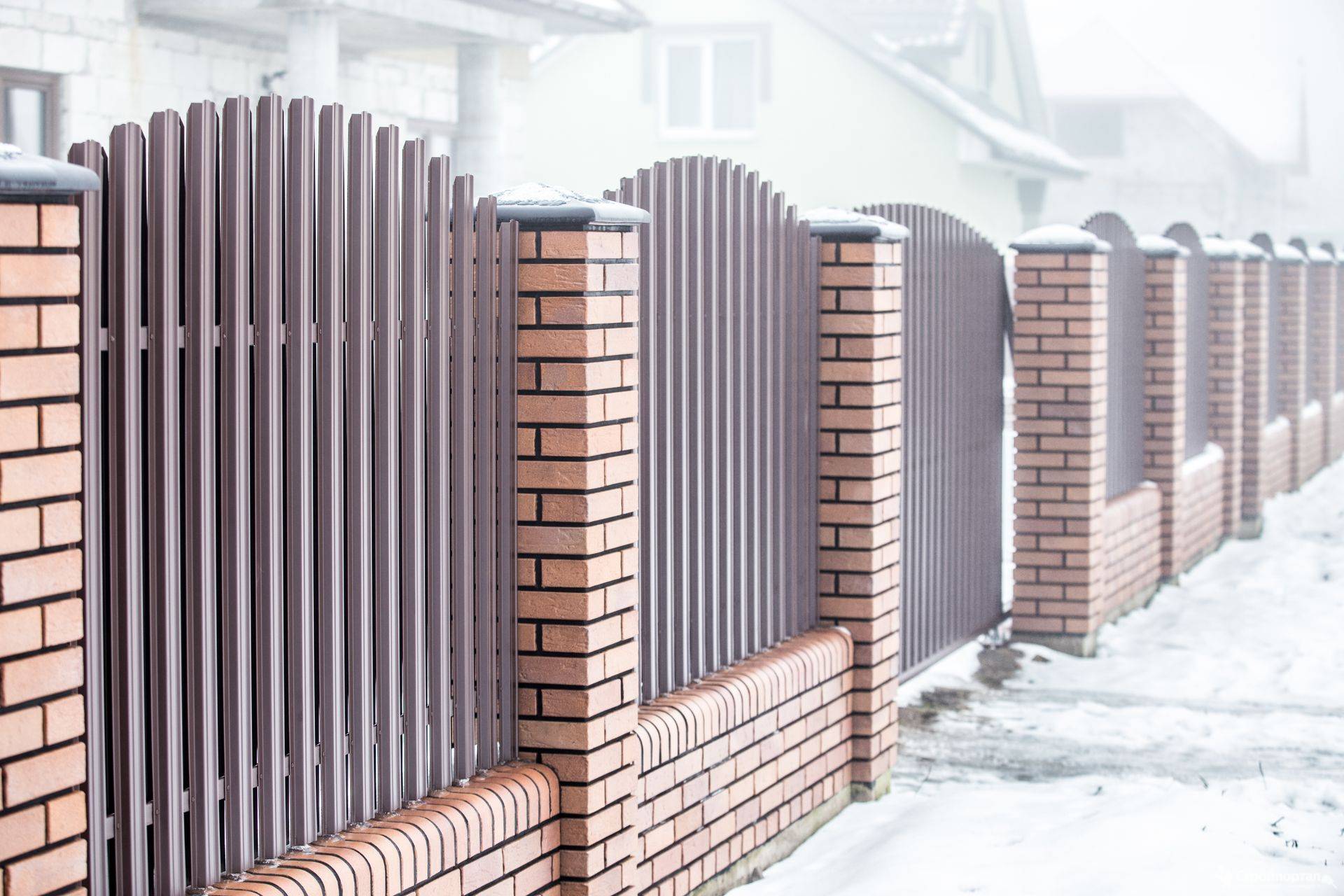 Заборы и ограждения из евроштакетника с кирпичными столбами 40 метров в Балабаново