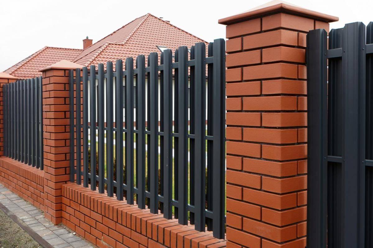 Заборы и ограждения из евроштакетника с кирпичными столбами 6 соток в Балабаново