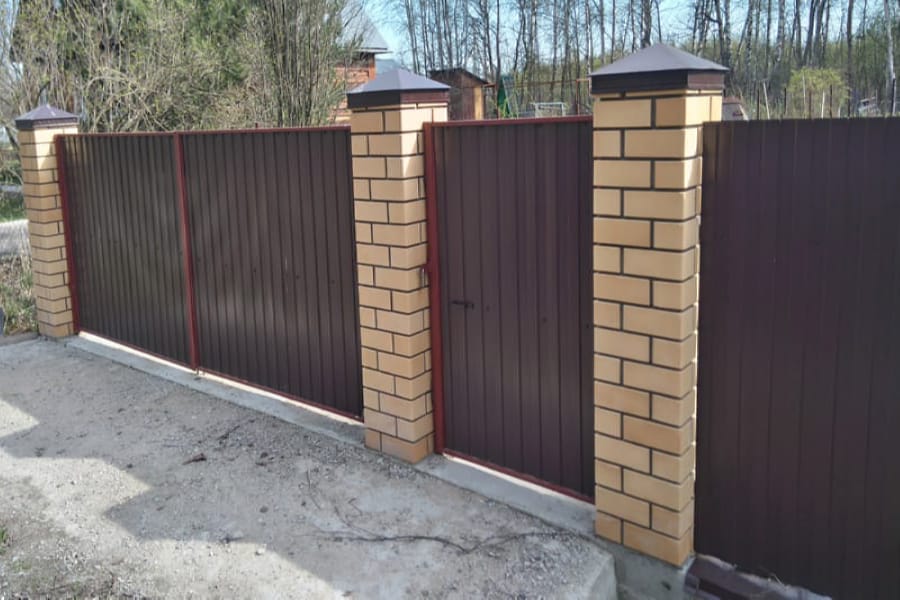 Заборы и ограждения из профнастила с кирпичными столбами 300 метров в Балабаново