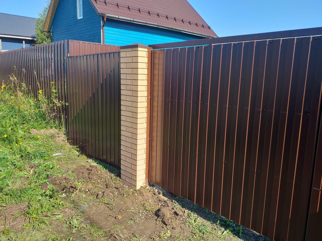 Заборы и ограждения из профнастила с кирпичными столбами 50 метров в Балабаново