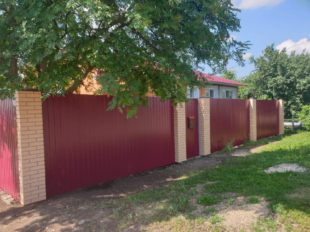 Заборы и ограждения из профнастила с кирпичными столбами 70 метров в Балабаново