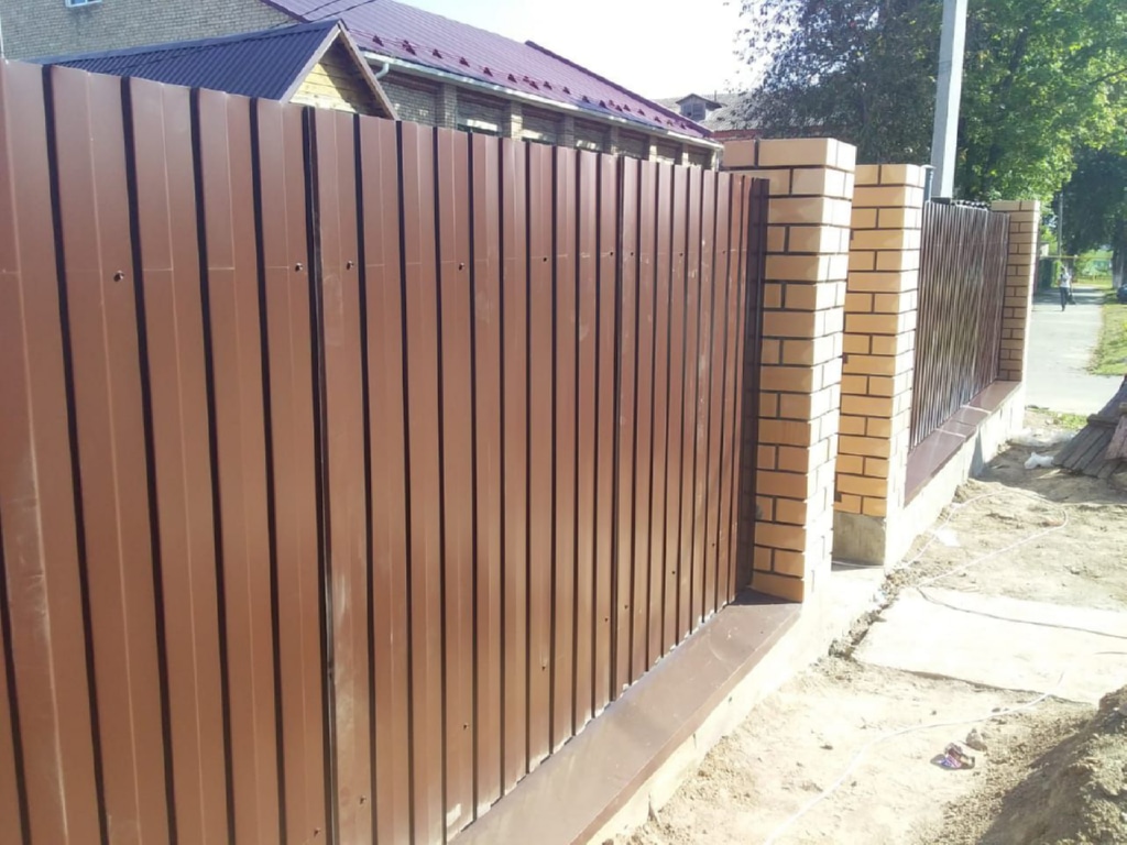 Заборы и ограждения из профнастила с кирпичными столбами 15 соток в Балабаново