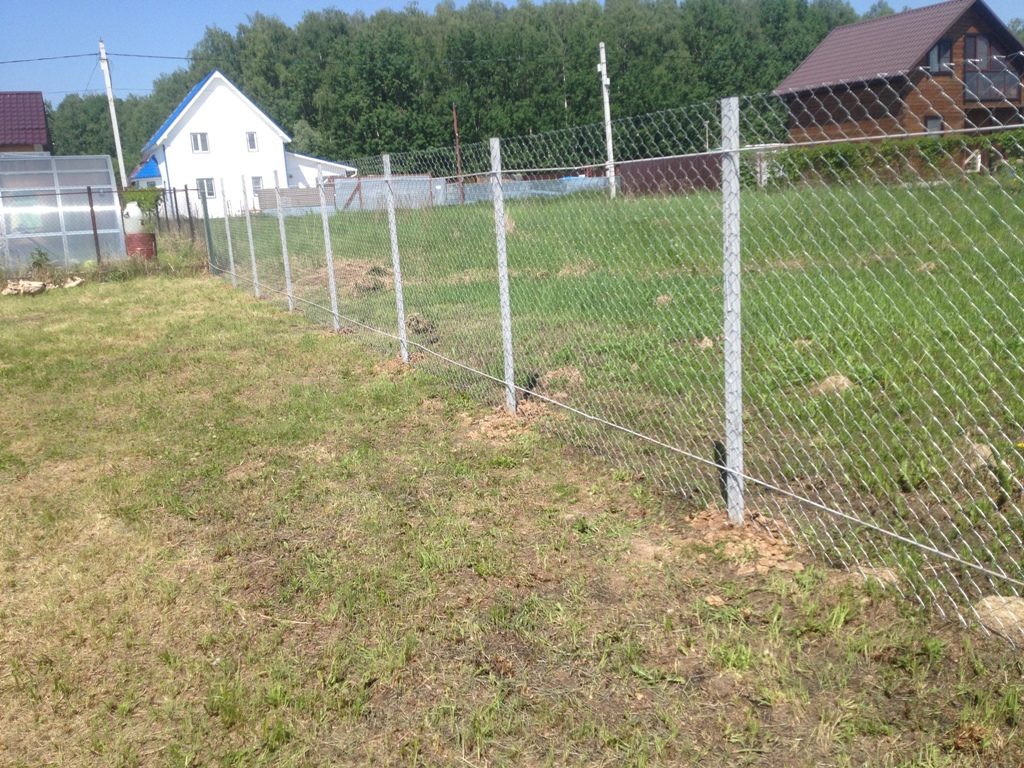 Забор из сетки рабица с протяжкой арматуры 15 соток в Балабаново
