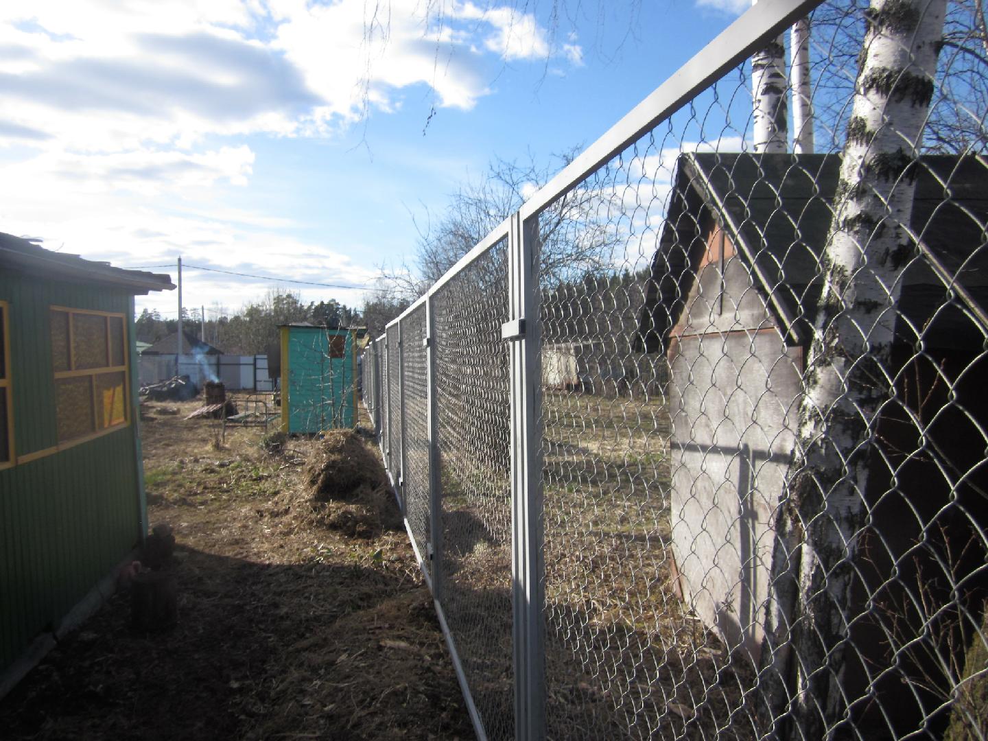 Забор из сетки рабица с забивными столбами 30 соток в Балабаново