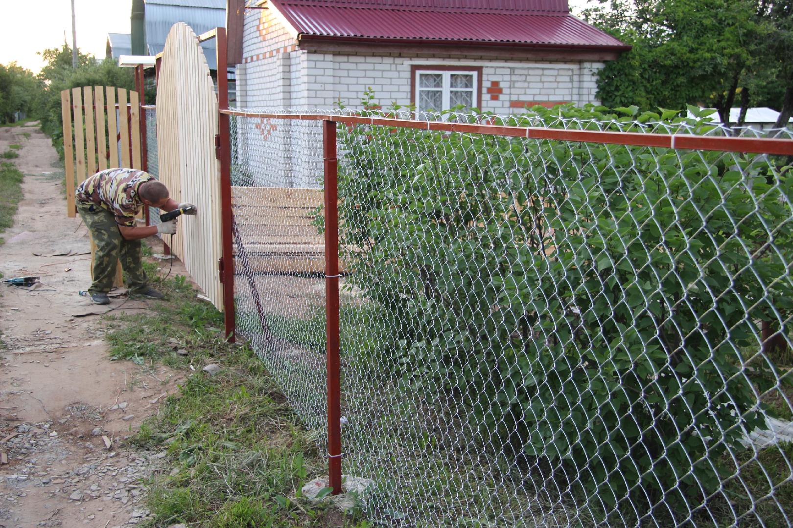 Забор из сетки рабица с забивными столбами 6 соток в Балабаново
